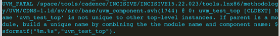 如果两个字节点的名字,是一样的,比如都叫uvm_test_top,那么仿真的时候会报错: