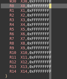 - reg_alias: 寄存器的别名,ARMv8有X和W寄存器的区别,W寄存器,其实就是X寄存器的低32bit。