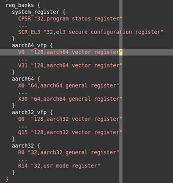 上图是dwarf_regs段描述的一部分,对于modes段,指定的每个cpu模式,都需要进行定义。