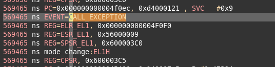 在569465ns,出现过CALL_EXCEPTION这个event。和tarmac文件中一致。
