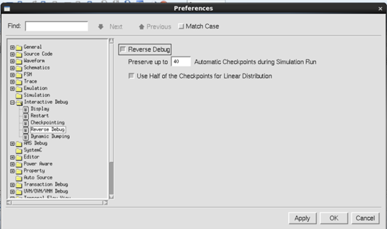 启动verdi之后,需要打开verdi的回退仿真功能。