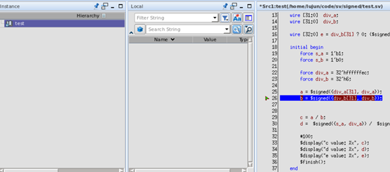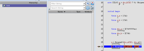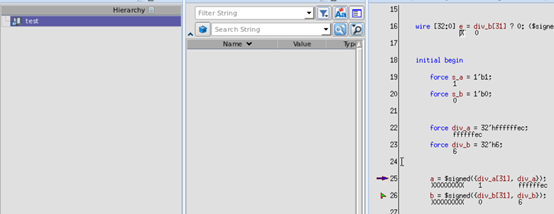 此时,执行的光标,回到了断点代码的前一行。此时仿真的状态就回到了执行上一条指令的状态。此时a还没有赋值,值为x态。