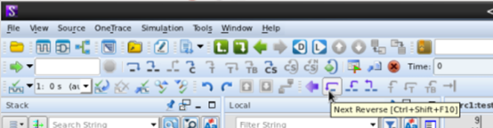 在verdi界面的控制窗口,会有几个紫色的按钮,用来支持回退交互式仿真的。