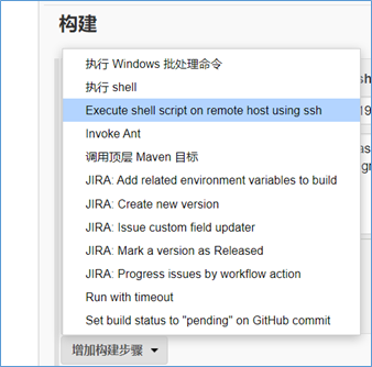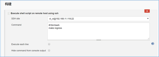 构建,选择 Execute shell script on remote host using ssh。