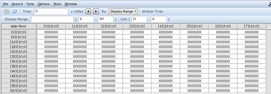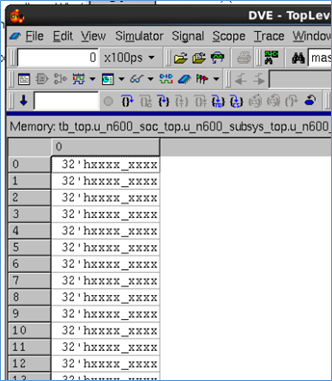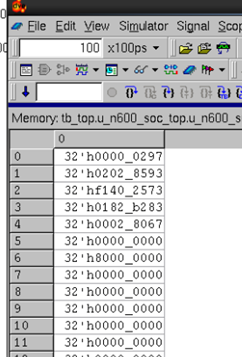 在console中,输入run 100,仿真一段时间。发现memory没有更新。此时需要按照上述步骤重新加载一次memory,才能查看。感觉这个没有dve的memory查看好用。