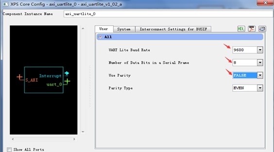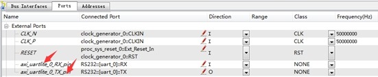 Step6:在port 标签下可以看到串口IP-CORE的发送和接收PIN端口上