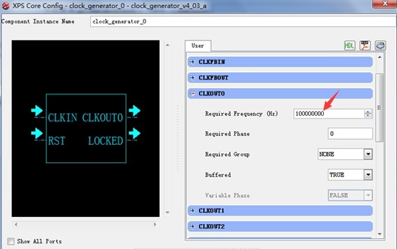 Step3:可以看到CLK_IN 是经过CLK输入进来的,然后经过PLL CLKOUT0输出100MHZ