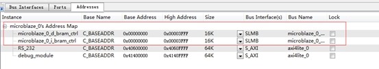 Step7:地址空间的分配情况,一般默认下产生IP-CORE的时候就已经分配好了,如果感觉没有分配好,就点击自动分配的按钮,重新产生一下,另外配置的16KB内存就是这力红色方框内的区域。
