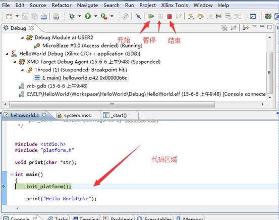 本实验的目标是学习XILINX EDK工具的使用,然后添加CPU 在总线上挂载一个uart 串口,然后通过SDK编程通过串口输出helloword