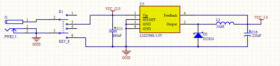 所需的电源包括12V的TCD1209供电电压、5V的IC供电电压,以及3.3V的AD采集芯片供电电压。为此,电路接入电压为12V,通过常用的LM2596S-5.0和LM1117-3.3来进行电压转换。满足电路所需的电压要求。