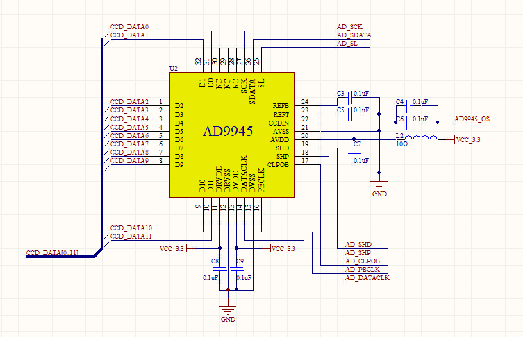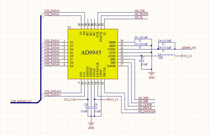2、TCD1209与AD9945电路设计