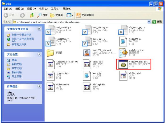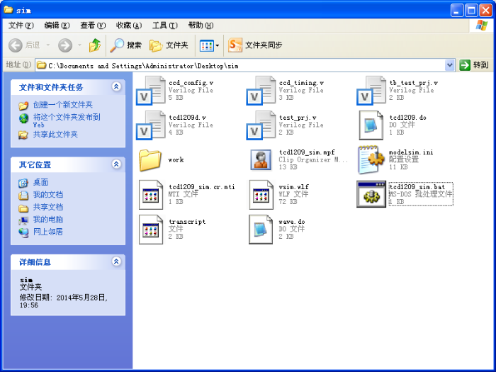 ·cd {C:\Documents and Settings\Administrator\Desktop\sim}--更改路径 名称(当前modelsim工程路径)