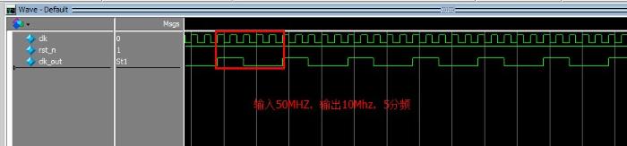 下面写了个输入频率50Mhz,输出10Mhz的例程。