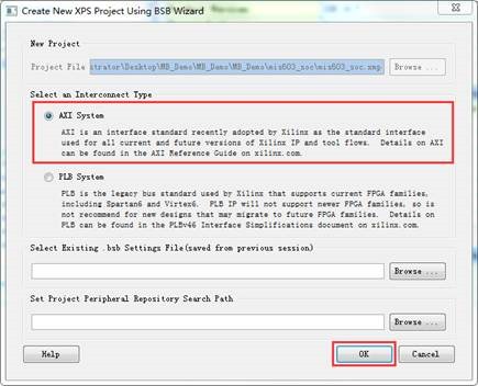◎双击添加的mis603_soc,进入MB系统的XPS界面。弹出的对话框选择Yes。在弹出的BSB wizard对话框选择默认。