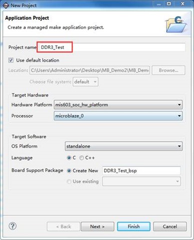 ◎工程命名为DDR3_Test,其他保持默认即可。
