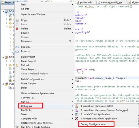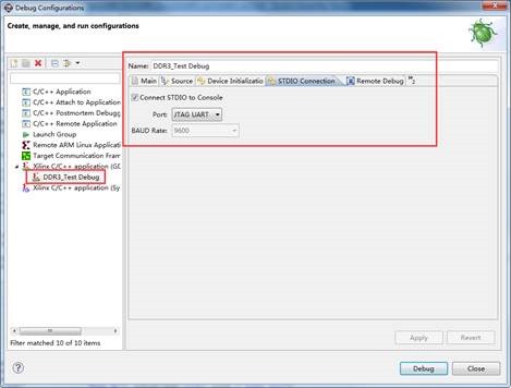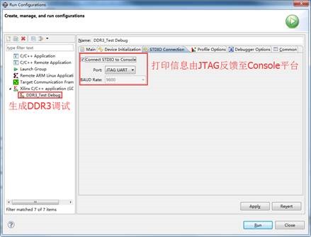 ◎将ISE生成的bit文件下载到开发板上。下载完成后,运行SDK软件部分。在Run Configurations界面先配置好。