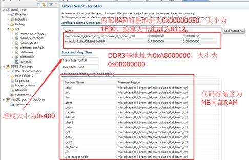 ◎现在,让我们来看看这个DDR3_Test的程序架构,看看他到底是如何运行的。首先,硬件平台没什么好介绍的了,system.xml在之前介绍过了。打开src文件夹目录下的lscript.ld文件。