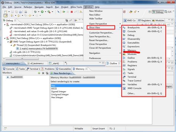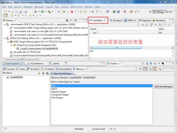 ◎当然对于内存的调试,我们还可以添加memory端口来监控。