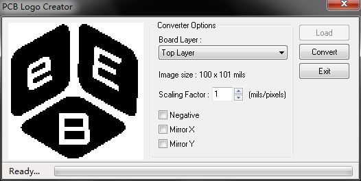 第八步:单击上图所示的“Convert”,稍等片刻,软件会从新生成一个PCB的绘制界面,这里就有刚转换过来的Logo图了,如下图。