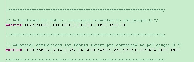 #define INTC_DEVICE_ID XPAR_SCUGIC_SINGLE_DEVICE_ID //设备ID