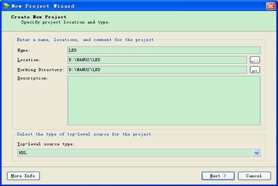 启动ISE14.6,新建LED工程