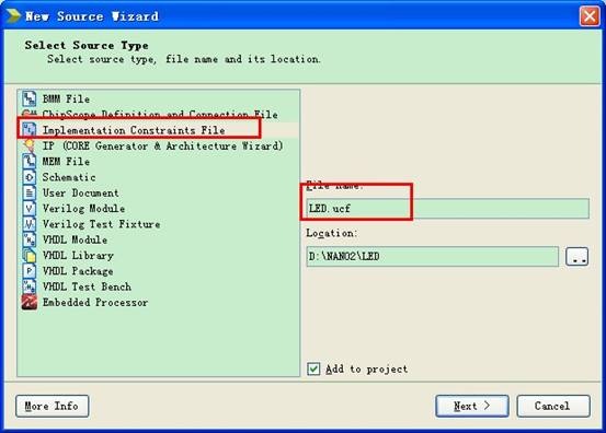 编写UCF文件,选择project-》new source