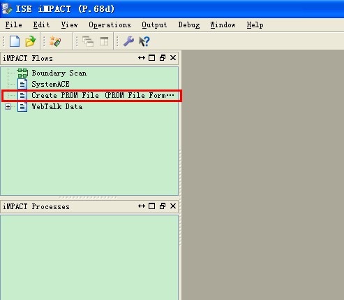 在产生bit流文件后,进入iMPACT界面,这下不是Boundary Scan,而是
