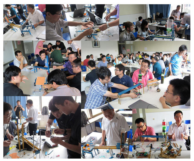 MakeBlock金属机器人构建平台,我认为有三点好处:1、强度和刚度高,不容易出现由于刚度不足,而出现传动链“嘎嘎嘎”作响,不给力的现象;2、机器人的结构规模可以做大,方便向工业级机器人靠拢;3、由于金属更具“机械”特征,所以往往容易被“专家”们认可,由此可以摆脱被他们戏说成“玩具”的尴尬,这样更容易在高校普及。下图是MakeBlock在清华大学工程班上的教学实践场景。