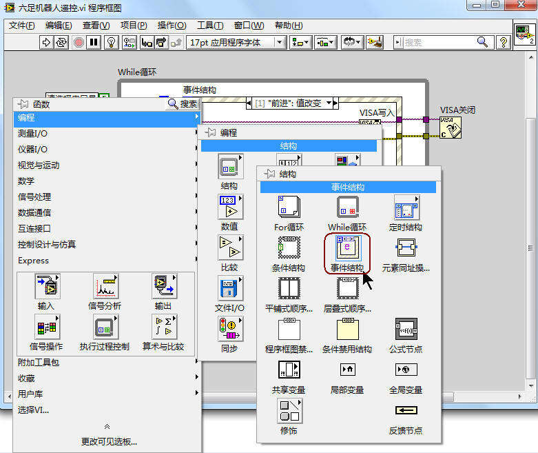 四、六足机器人的LabVIEW人机界面的框图程序编制