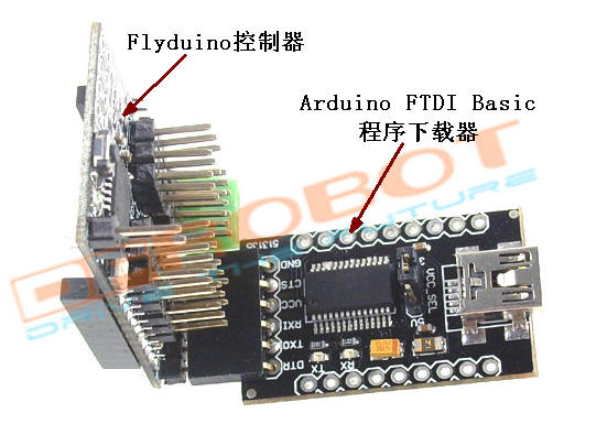 图7 Arduino FTDI Basic程序下载器与Flyduino控制器的连接
