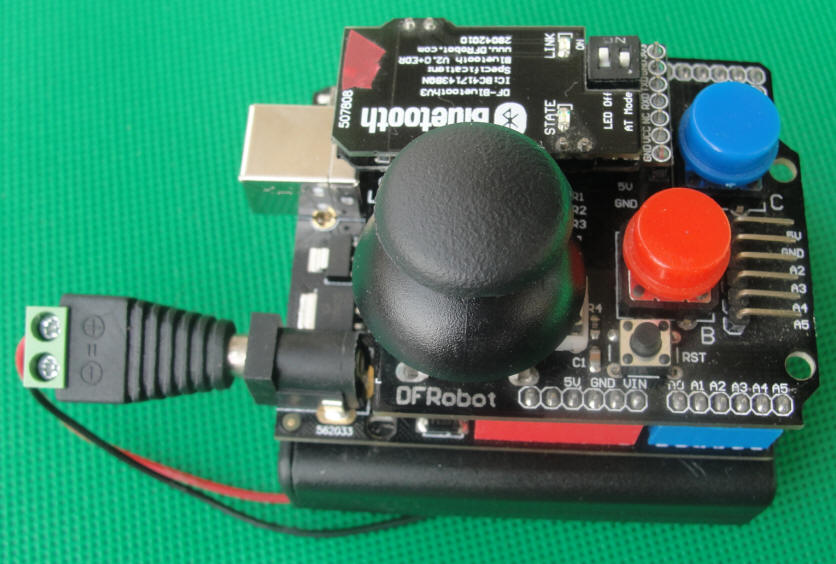 游戏杆模块采用叠层设计,可以轻松的插接到DFRobot公司的Arduino Duemilanove或Arduino UNO上。预留DF-Bluetooth V3蓝牙模块和APC220数传模块的接口,能方便地的实现无线遥控功能。