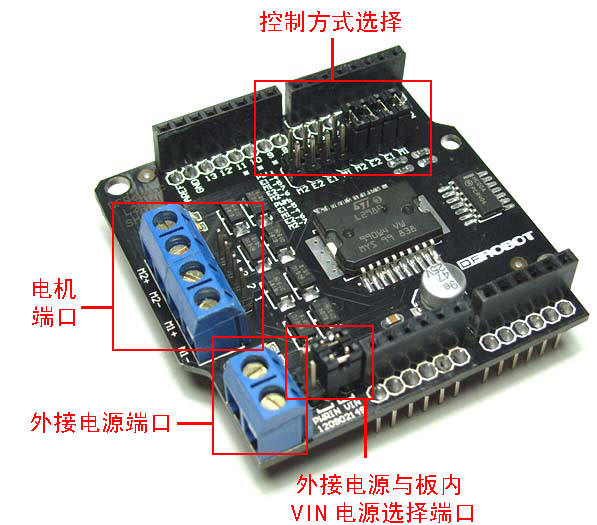 图3 L298 Shield2A大电流双路直流电机驱动板