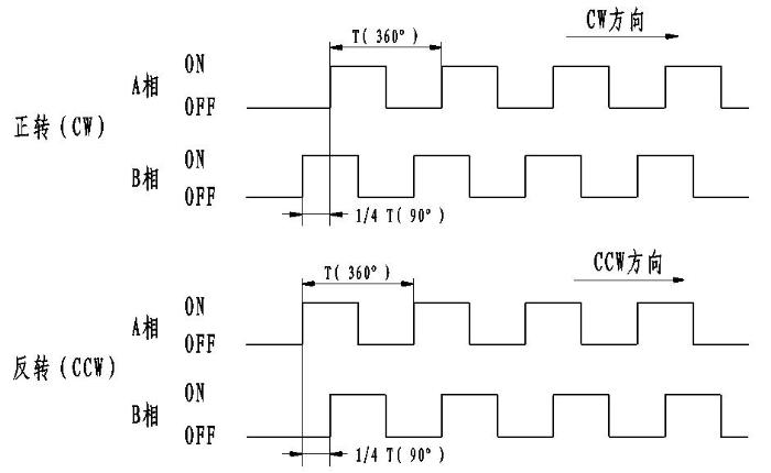 图4电机正转或反转的编码器A、B相脉冲波形图