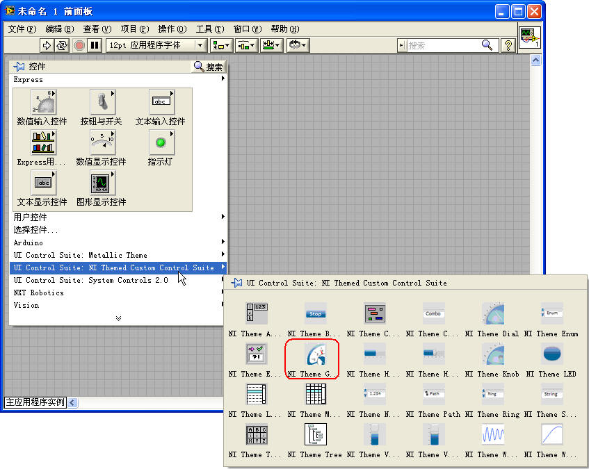 安装完后,Labview的控件工具库面板里就会多出这个NI主题风格的控件库组件,控件库包括:仪表盘、按钮、开关、图表等。有了这个控件库组件,您再用它设计的人机交互面板会比以前更酷,我喜欢通过某种“利器”放大自己能力的感觉。
