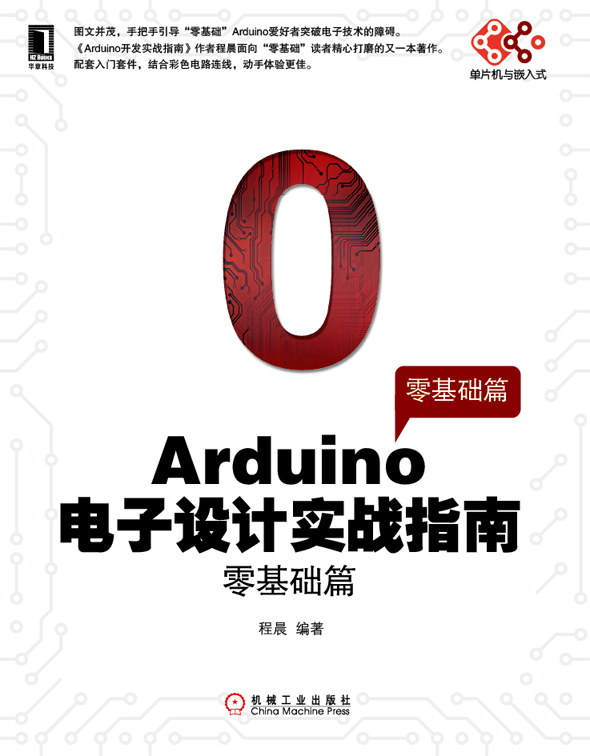 一直以来,学习单片机编程,首先要熟悉底层硬件知识,诸如总线关系、接口地址、寄存器功能等知识,对于初学者是晦涩难懂的,而且在软件编程中,还要准确详尽地描述这样硬件信息。现在有了一种易学好用的“单片机”,即Arduino“单片机”,你不必知道它的硬件结构,只需了解其引脚作用即可,而且凭借强大的库文件和精简的指令系统,可以让程序编写轻松快捷。Arduino单片机在国际上已经很流行了,但中文资料却极少,所以我推荐程晨老师写的这本Arduino入门书。本书列举了许多生动的实例,绘制了Fritzing面包板连线图,讲解了详尽的语法知识,呈现了一个个清晰的实验照片,而且本书所用的Arduino“单片机”和电子设计的花费很少,这使得读者有机会边学习知识,边动手实践。