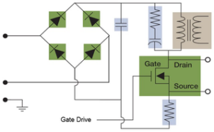 待机功耗面临的测量难题 参考下列实例中某电源输入端的低待机功耗的记录(图1),图中明确、直观地显示出了待机功耗图形的严重失真、多波峰及不规则状态。例如,在输入电压为230V的欧洲地区,如果您测得待机功耗为10mW,则电流可低至40µA。如待机功耗为5mW,电流可低至20µA。 低电流会导致许多问题。由于低负载运行电源通常会损耗非正弦、极高波峰因数电流。功率因数很低,原因是电流主要为流经电源EMC滤波器的电容性电流。如果电源瞬爆或短暂下降,或处于最小化输入功率的模式,功率损耗也呈不规则状态。 波峰因数只是峰值除以rms值所得的结果,在测量待机功耗时,波峰因数往往非常高。要想究其原因,需仔细考虑典型交、直流转换器的前端阶段(图2)。大多数情况下,输入整流器的后面均装有旁路电容器,专用于消除输入电压纹波,并为下一个转换阶段提供较稳定的直流电。输入电流仅在旁路电容器电压低于交流输入电压峰值时流动。流入电路的电流流量和流入时间取决于电容值和总负载电流。这会导致输入端电流狭窄、多峰。PFC电路的设计可缓解这种满负荷状态下的效应,但遗憾的是大部分PFC电路在空载状态下并不活跃。 电容器在确定波峰因数中发挥关键作用 在处理这类信号时,另一个需要考虑的重要方面是功率因数。依惯例,功率因数被定义为:PF=cosΦ,在此公式中,Φ表示峰值电压和电流之间的角度差异。在这种情况下,非正弦电流与电压相符,但VA——电压-电流产品,或表观功率——比实际活跃功率或有效功率要高得多。这表明在所有实际应用中,功率因数均应被定义为:PF=有效功率(W)/表观功率(VA) IEC 62301测试 最新发布的IEC 62301第二版待机功耗标准明确指出了与测试待机功耗的相关挑战,将这些挑战纳入限定范围并推荐了测试方法。 大部分实验室的壁式插座电压均有可能品质不佳,大多数情况下会导致因电压谐波含量或越限波峰因数而无法通过IEC待机功耗测试。因此,强烈建议使用预先定义公差的交流电源,甚至可用于认证前测试。最高第13阶电压源的电压和频率输出应在1%以内,总谐波含量应低于2%。电压波峰因数应在1.34和1.49之间。 测量的不确定度以待测功率等级和波形的失真和相移为依据。为兼顾失真和相移,IEC 62301将最大电流比(或称MCR)定义为:MCR=波峰因数/功率因数 所需的不确定度等级可使用标准中提供的流量表确定。这就限定了测量设备所需的最低精度和噪声等级。功率分析仪的所需精度在1mW条件下约为2%,在0.5W条件下为2%。这表明你的功率分析仪应具备2%的最低功率精度或10mW或以上的功率解析度。应注意,由于可变因素很多,进行测试时必须对不确定度进行实时计算,并将其纳入报告当中。 直接读值和平均读值测试法均已过时,最新规范要求使用抽样测试法。在所有功率测量值当中,测量值稳定度通过最小二乘线性回归法得出。当直线回归的斜率小于10mW/h(输入功率≤1W)或低于功率的1%(功率高于1W)时便可确定稳定度。 测试设置对于弱电测量至关重要。在一般设置中,通过提供两个终端,用于源端和负载端之间的切换,并使用一台功率分析仪(图3)、一个接线盒辅助进行安全、简便地连接。 图3在IEC 62301测试设置中 使用一台Tektronix PA1000或PA3000功率分析仪 使用接线盒非常有益且安全 测量功率时,可使用两种方法将电压和电流通道连接起来。一种方法是在各级负载的电流测量值比电流更精确时连接,另一种方法是在各级负载的电流比电压更精确时连接。连接选择取决于负载电流是否很低或各电压通道阻抗等级的功率损耗是否占测得总功率的较大部分。通过将电流测量转移到负载端,流经电压通道的电流可被忽略(图4,右侧)。 另一方面,如果负载电流较高,物理分流器耗散的功率水平足以造成功率读值的误差。为预防出现这一问题,可安装功率分析仪电流分流器,以便分析仪出现的读值下降时可被移至源端,进而被忽略(图4,左图)。在使用Tektronix PA1000或PA3000功率分析仪(图3)进行测试设置的情况下,电压通道的阻抗为1MΩ,1A电流分流器的阻抗为600mΩ。尽管不同功率测量设备的所得数值各有不同,但大多数值都非常接近。 将阻抗数量考虑在内,当源电压为230V时,电压表通道的压降可为53mW。在对数百瓦功率进行测量时,此压降数值并不大,但当功率低至30mW时,此压降会导致非常明显的误差。 同样,电流为100uA的分流器的功率损耗只有60uW。但如果电流为1A,功率下降可高达600mW。各测量通道的这种下降会严重影响读值并生成错误结果。因此,连接时应小心谨慎,特别是对极低的功率值进行测量时。再者,接线盒可提供两个不同的终端,用于源端和负载端间的切换。