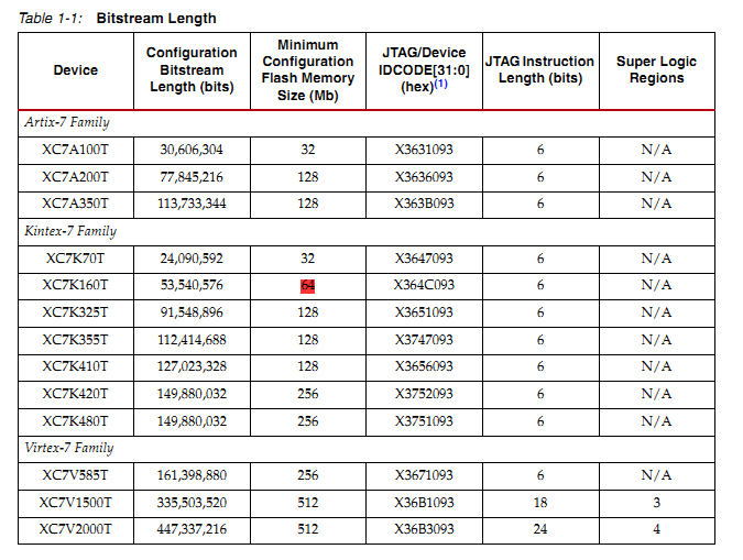 我们可以得到XC7K160T的bit文件大小是53Mbit.所以一般情况下存放该位流至少需要64Mbits的FLASH。如果作为远程更新用的存储芯片大概就需2x64Mbits=128Mbits。