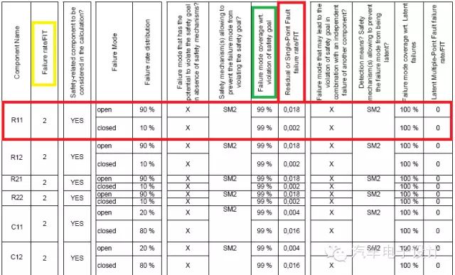 1)R11 open会导致车速信号采集有误,但由于采取了安全机制SM2,诊断覆盖率99%,即99%的故障可以被诊断出来(诊断覆盖率的具体数值,ISO26262中有推荐值)。但是,依然有1%的故障检测不出来,则失效率1.8 Fit×(1-99%)=0.018 Fit
