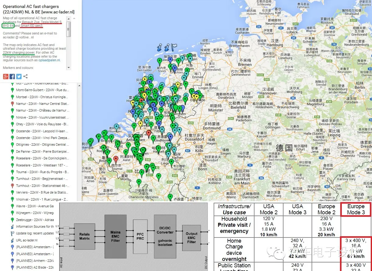 看德国造那么多22KW交流充电站,还是给力的。地图有发现E6的踪迹,是以10单位的在欧洲跑跑……