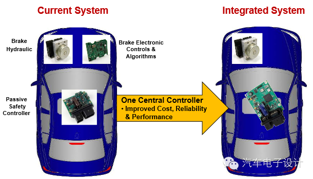 比如Autoliv的算盘如下图所示,从主动安全的趋势,把原有底盘电子吃掉。从主动安全的演进来看,集成是必然的。当然传统的动力总成厂家,就想着将底盘电子和动力总成的结合成一个Domain.当然目前Telematics和Body这块的结合,已经是现状了,Tesla大屏出来,网关+车身控制+Telematics,在这种与车辆安全性较远的区域,变革的速度远远超过整车的演进。