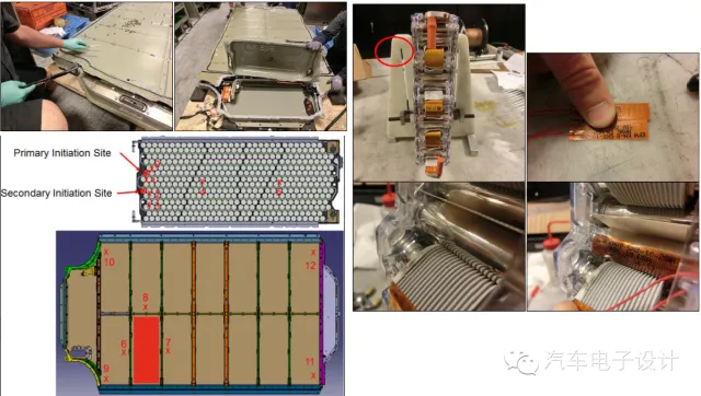其实不管是从整个模块设计来看,Tesla设计的模块还是很厉害的。根据他们自己提供的参考,在冷却管输出的前端,比较容易热失控。根据下图可以看出,在这一片区域发生过程中,单体的热量没有扩散,其中液冷的过程很有意思。