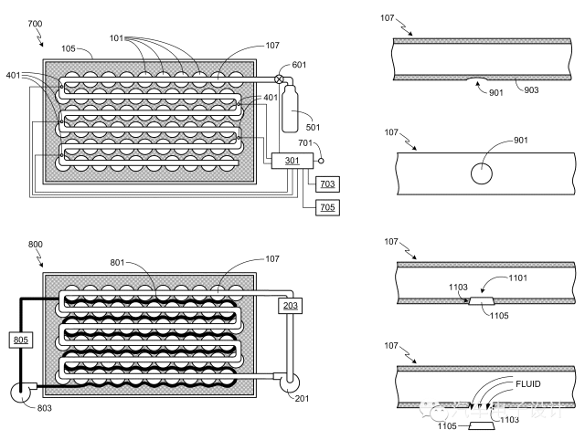 方法:利用散热的导流管,设计的时候考虑电池发热的温度使得冷却管融化,将散热液灭火