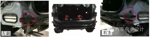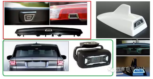 还有一种办法是在后视摄像头后视镜上加检测,如下图所示,可以集成在鲨鱼鳍天线上,后挡风玻璃前侧和后备箱盖的上沿。