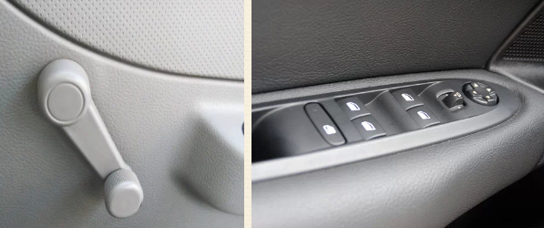 第一,纯手动车窗。即通过手摇让玻璃升降,这让人想起手扶拖拉机和手摇起动的卡车,反正都是手动,不是今天的重点,就不多说了。
