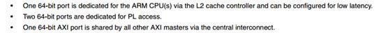 (1)一个端口是连接到ARM的二级缓存,经过64 bit的AXI总线接口连接到内存控制器。