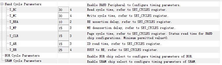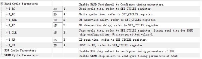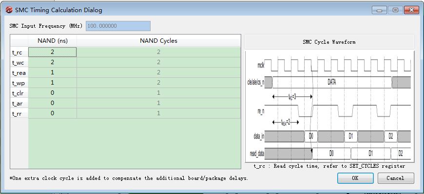 图1.1 ISE中XPS的NAND flash默认SMC timing calculation设置