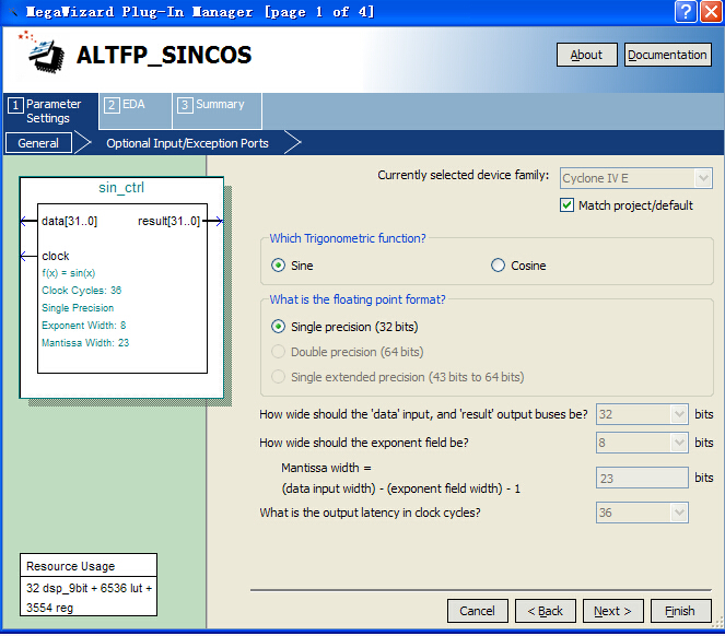 利用quartus II 13.0例化了一个ALTFP_SINCOS