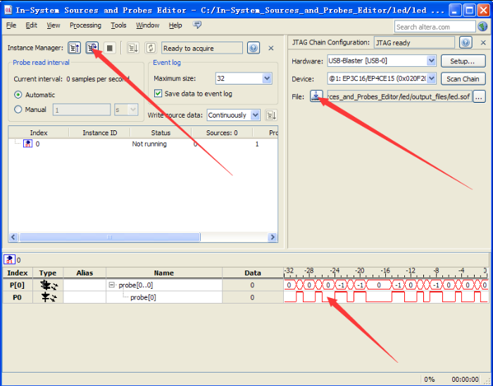 11、如果还未使用 Programmer 执行过下载操作,可以如图所示在 In-System Sources and Probes Editor 界面中执行。