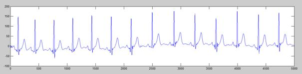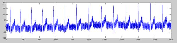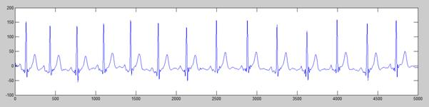 第四步:将a4(n)的重构信号减去a10(n)的重构信号,得到滤除噪声后的心电波形。