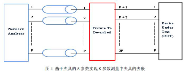 下图4所示为S参数测试仪器通过夹具对被测件DUT进行测试的一般拓扑结构。